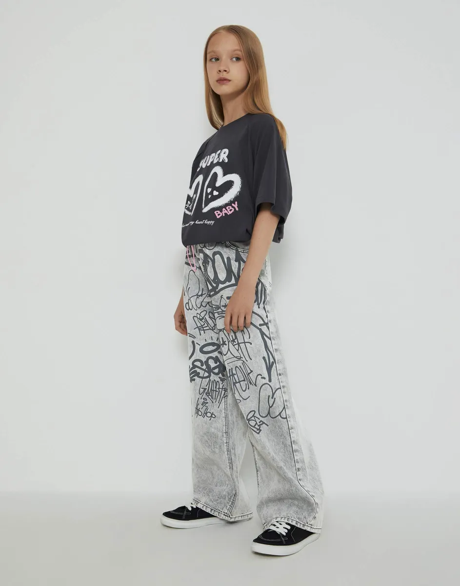 Серые джинсы Long Leg с принтом для девочки GJN033134-1 размер 122