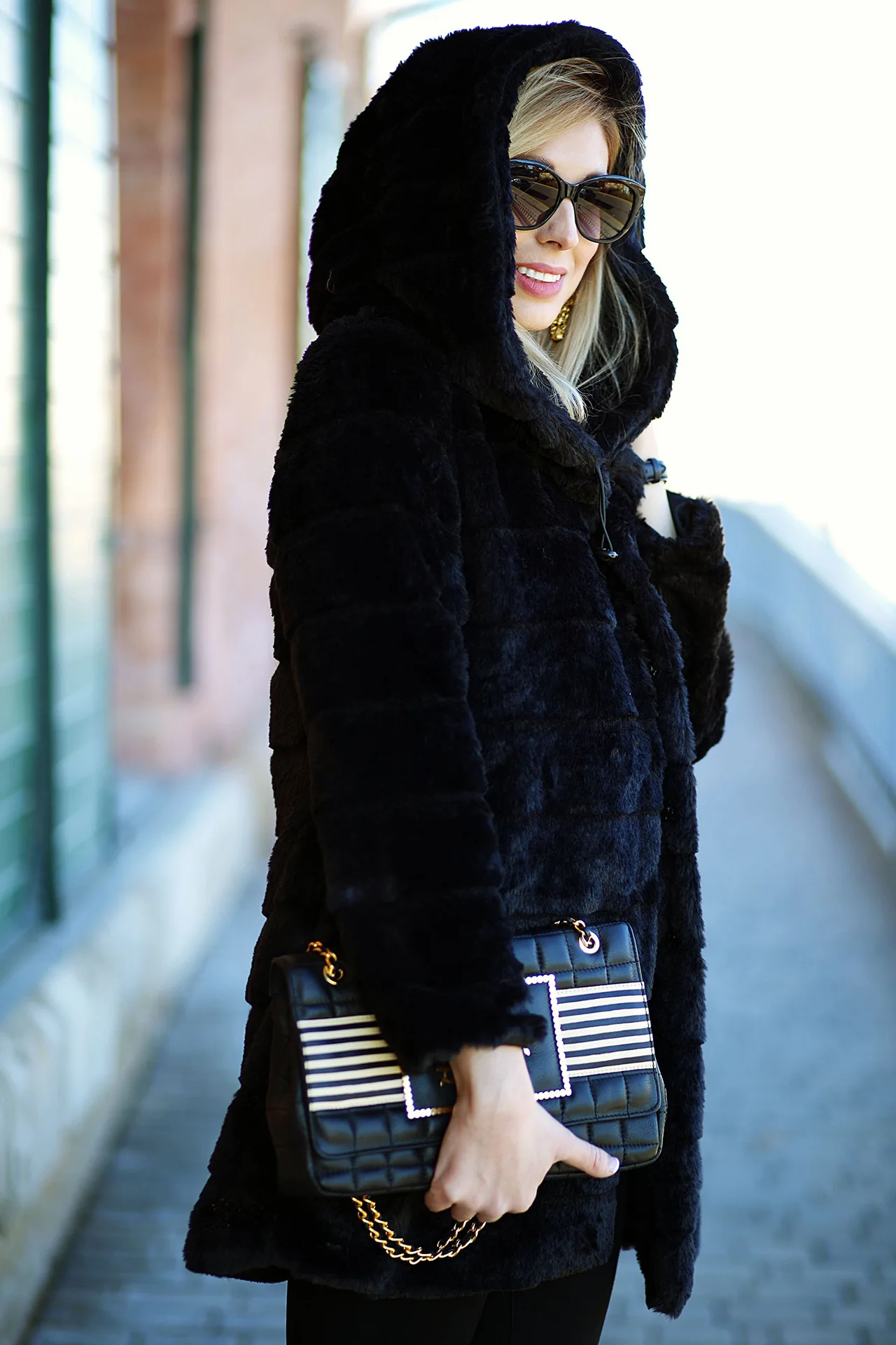 Длинное осеннее пальто ASTER с капюшоном из эко-меха Garne 3035705