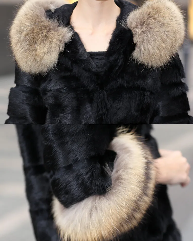 Натуральное натуральное пальто из кроличьего меха с капюшоном из меха