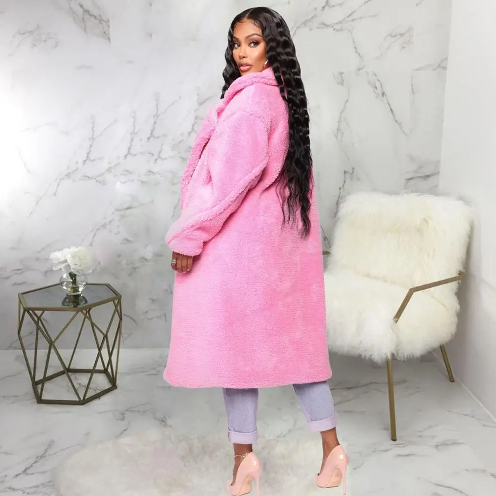 Пальто из искусственного меха, Женское зимнее пушистое плюшевое пальто