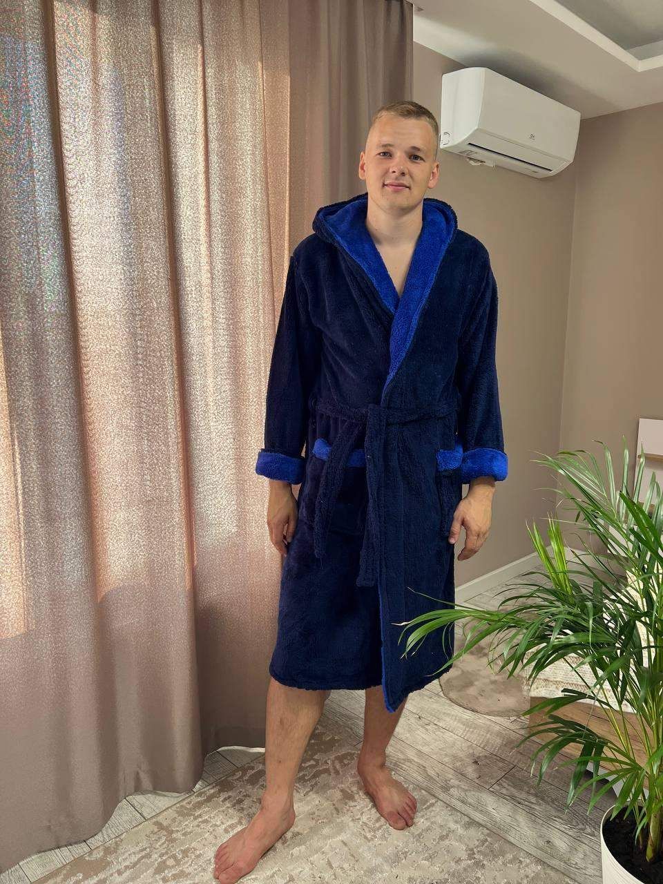 Халат чоловічий махровий XL Темно-синій (П4К-Al-male-halat-002-02