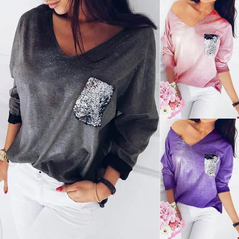 Новые женские с длинным рукавом v-образным вырезом простые базовые