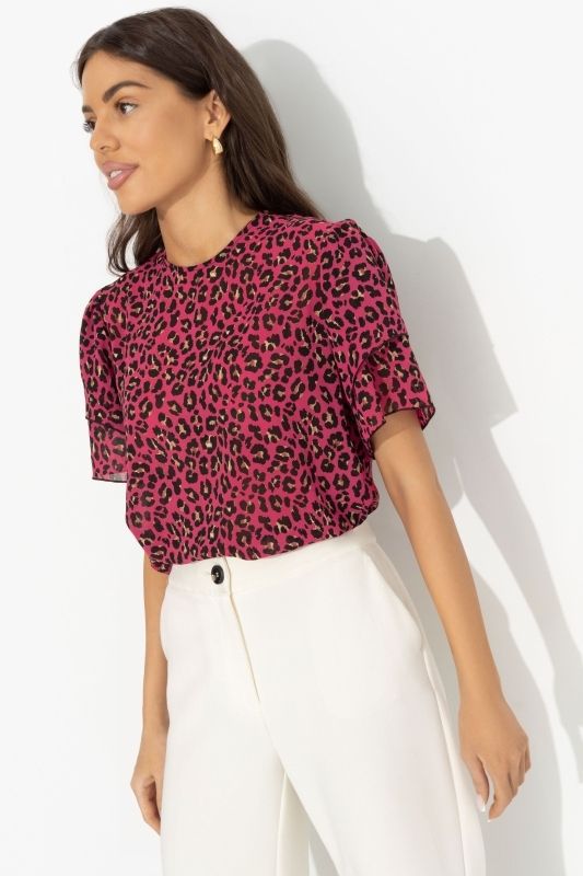 Блузка с леопардовым принтом с дизайнерскими рукавами CH-Открыта