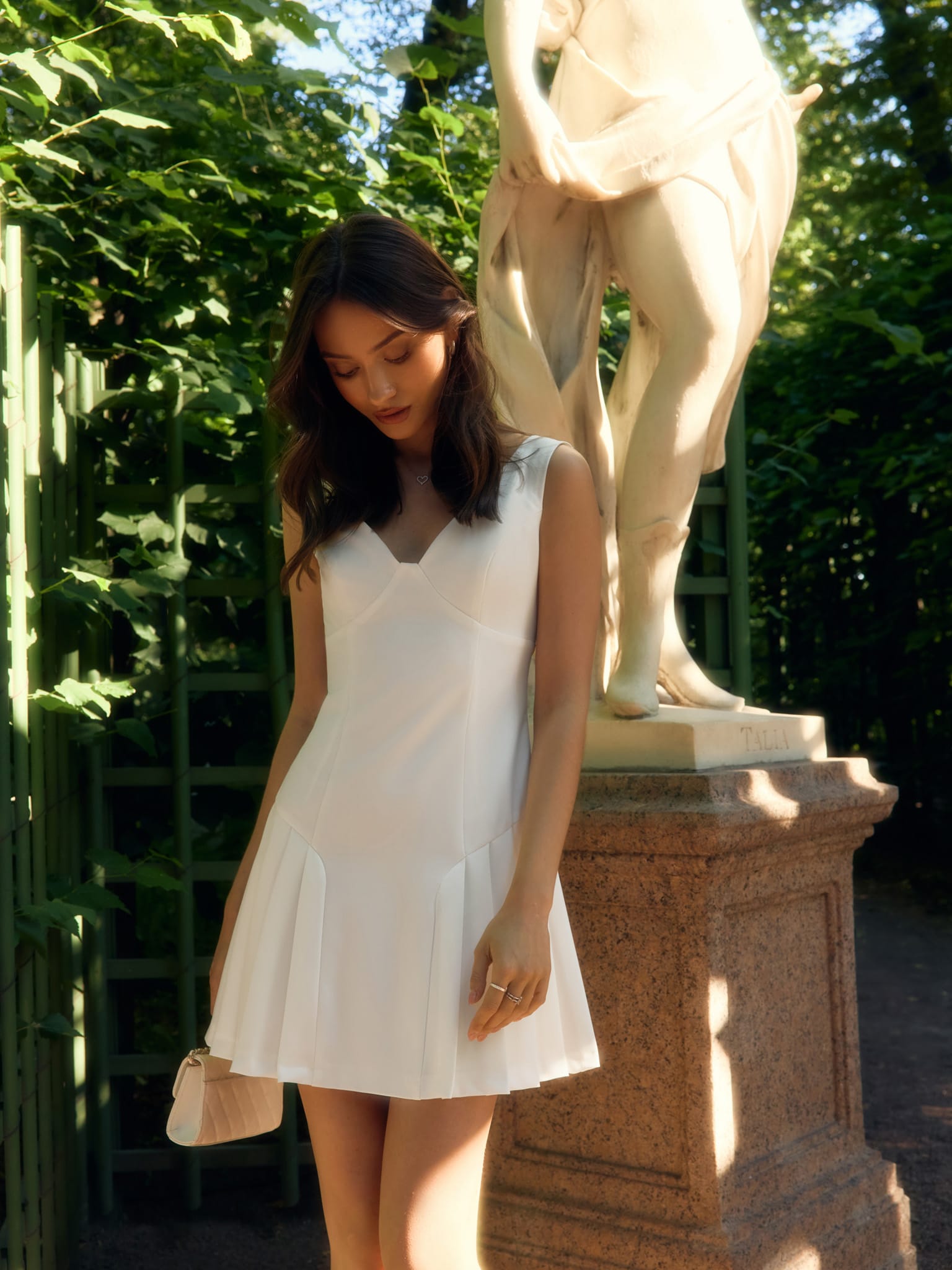 Платье мини с V-образным вырезом и юбкой в складку :: LICHI